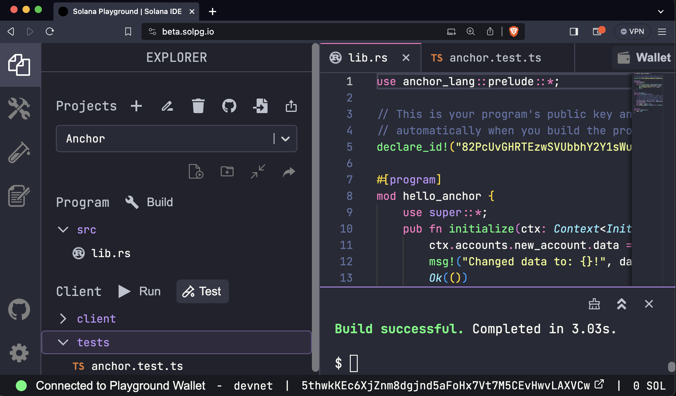 +Open this [Solpg link](https://beta.solpg.io/https://github.com/solana-developers/anchor-examples/tree/main/quickstart) to view the Anchor project from this [Github repo](https://github.com/solana-developers/anchor-examples/tree/main/quickstart).