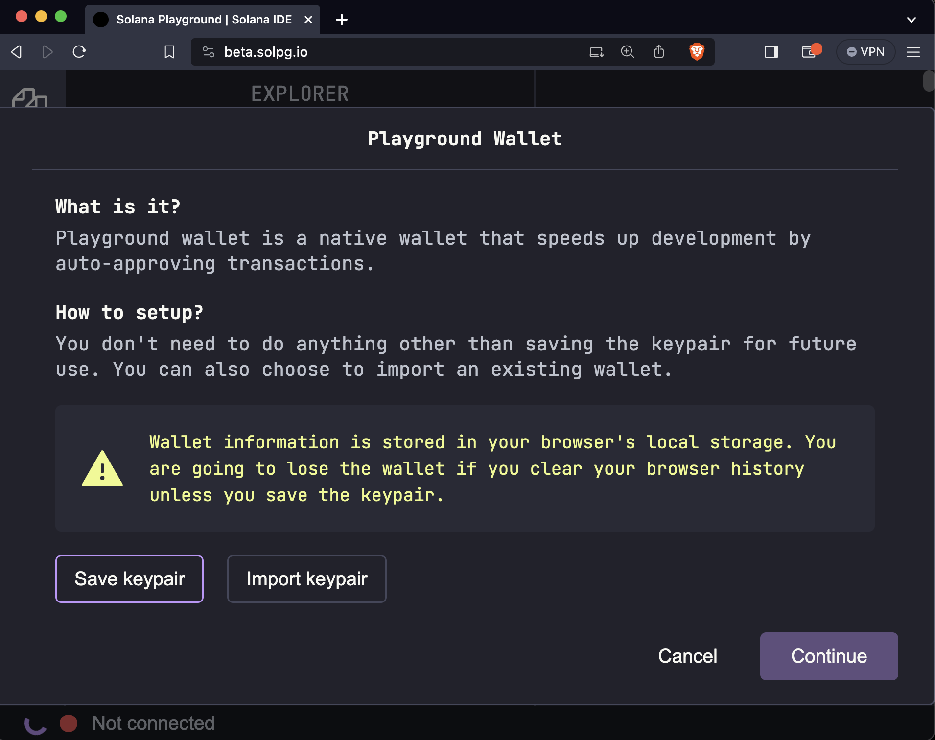 +Your Playground Wallet will be saved in your browser's local storage. Clearing your browser cache will remove your saved wallet.